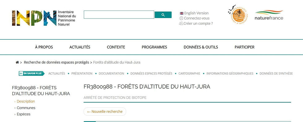 On arrive donc directement sur le site de l'INPN, à la page dédiée à cette zone :