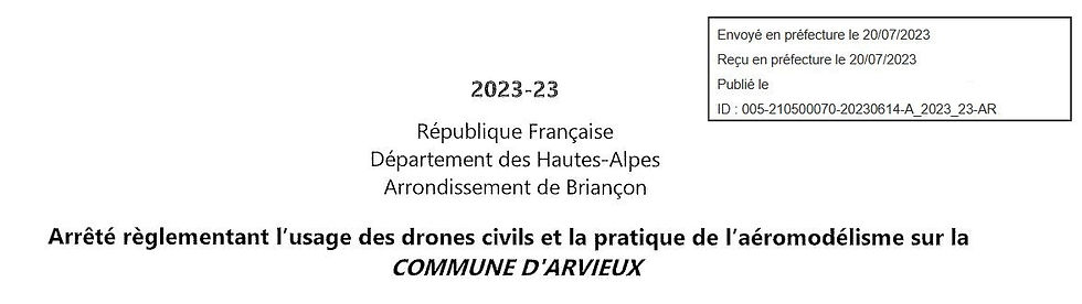 Lequel arrêté indique, dans son article 7, que le vol de drones y est interdit :
